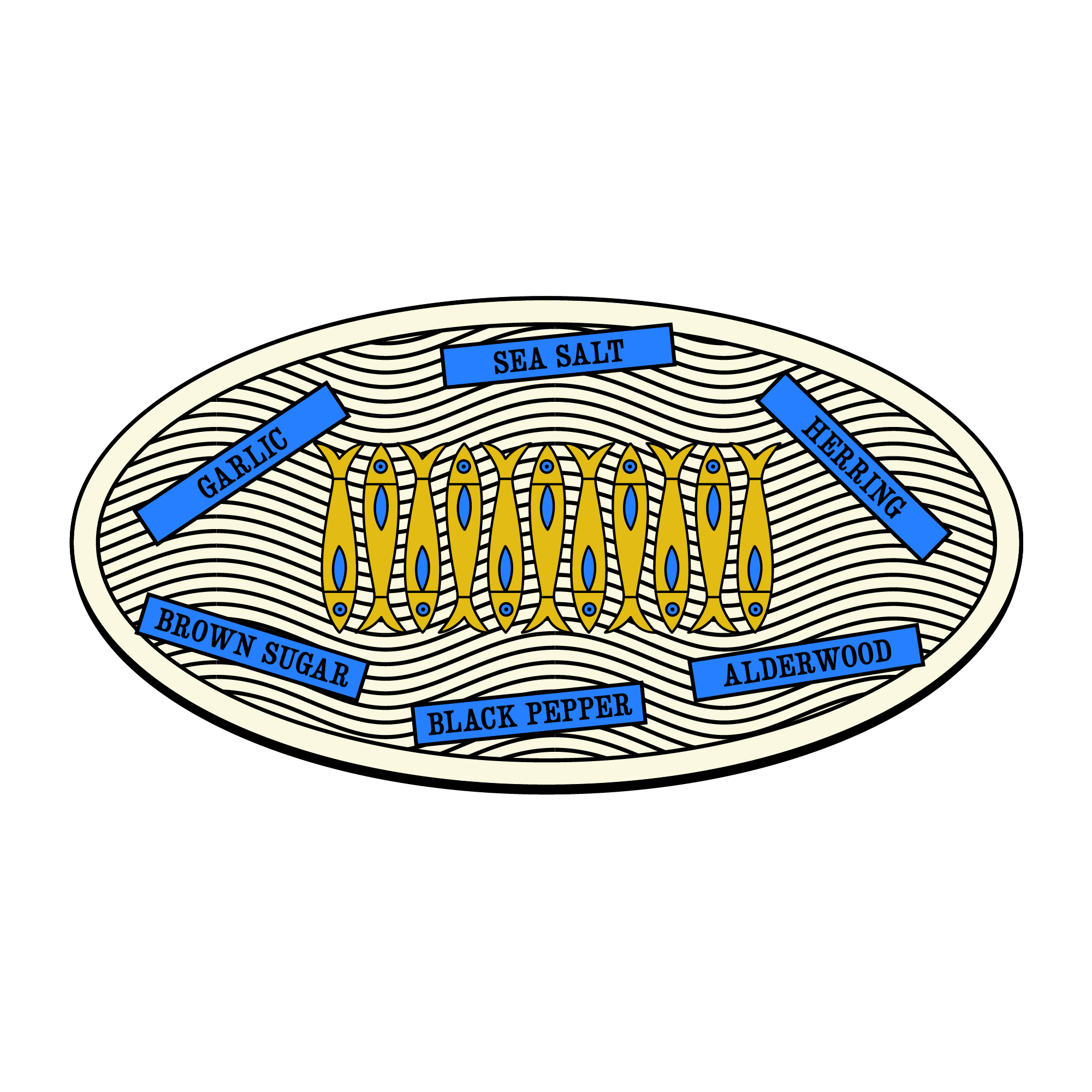 Herring, salt, pure cane sugar, garlic, black pepper, all-natural wood smoke